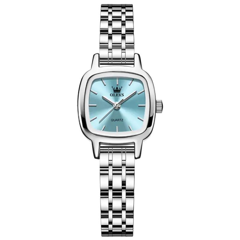 Relojes OP-5675 SILVER BLUE para Mujer, Reloj de Cuarzo Cuadrado Elegante de Acero Inoxidable, Resistente al Agua, Luminoso