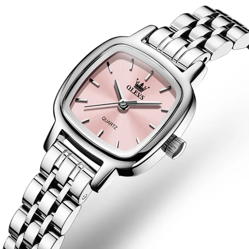 Relojes OP-5675 SILVER PINK para Mujer, Reloj de Cuarzo Cuadrado Elegante de Acero Inoxidable, Resistente al Agua, Luminoso
