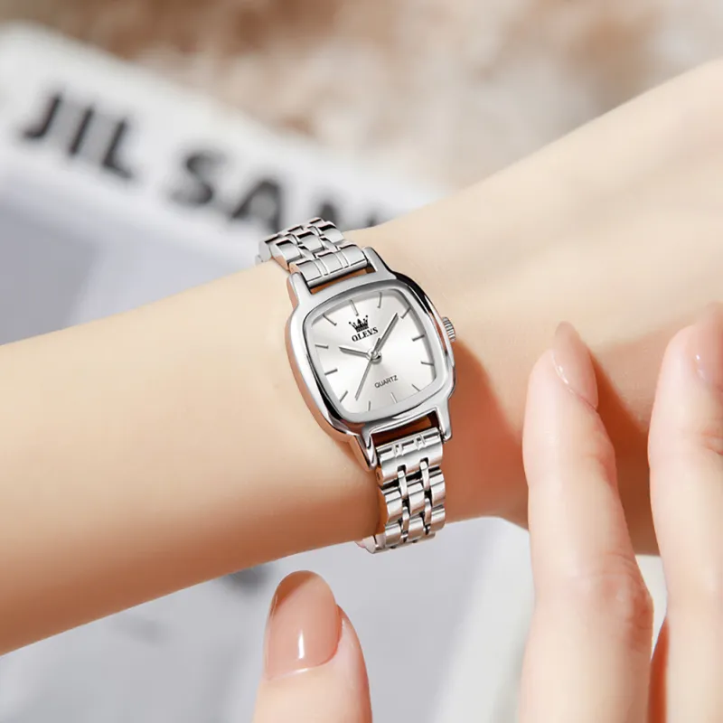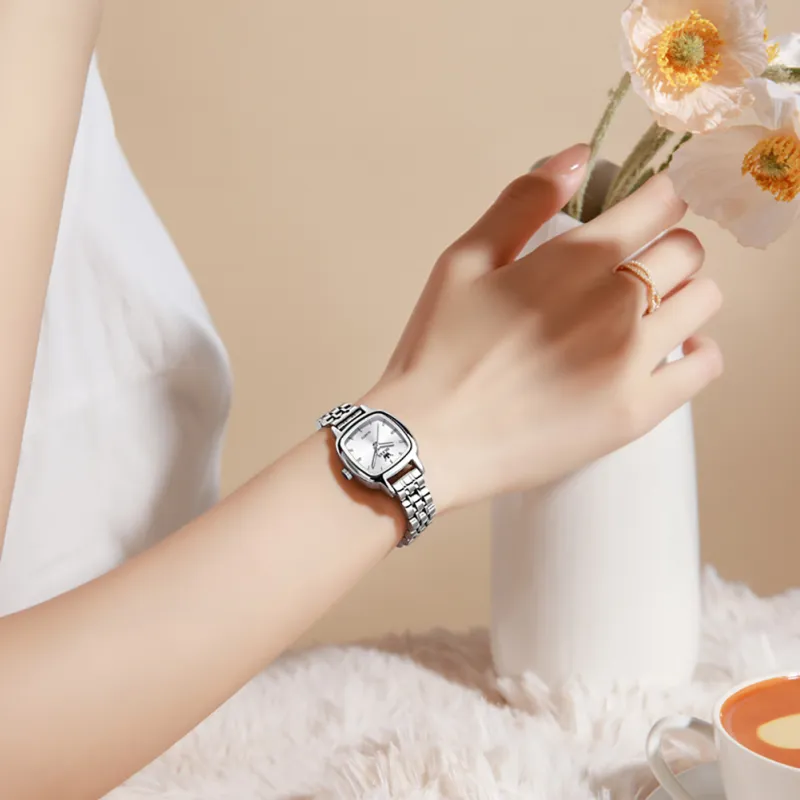 Relojes OP-5675 SILVER WHITE para Mujer, Reloj de Cuarzo Cuadrado Elegante de Acero Inoxidable, Resistente al Agua, Luminoso