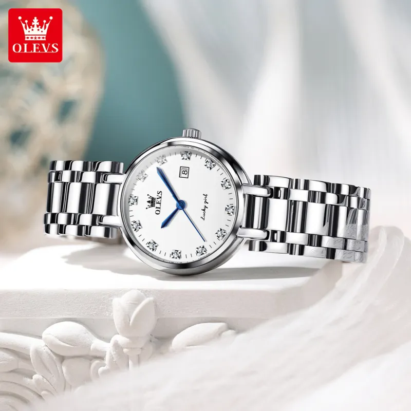 OLEVS OP-5575, Reloj de Cuarzo para Mujer con Caja de Aleación de Lujo, Correa de Acero Inoxidable, Ideal para Regalo
