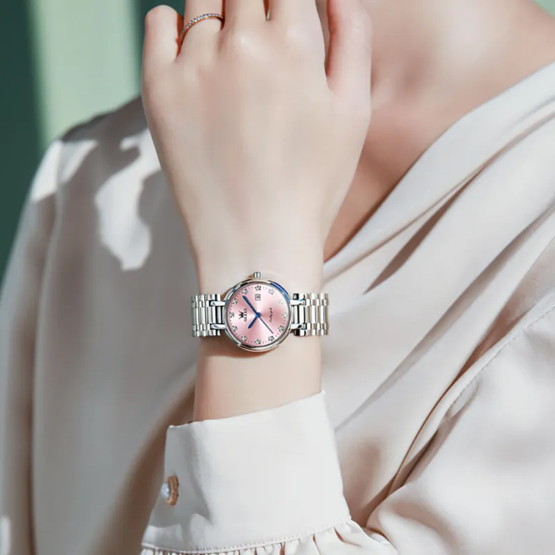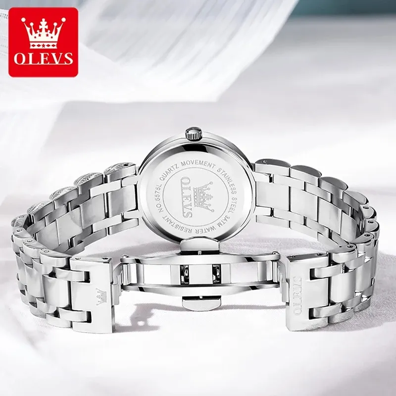 OLEVS OP-5575, Reloj de Cuarzo para Mujer con Caja de Aleación de Lujo, Correa de Acero Inoxidable, Ideal para Regalo