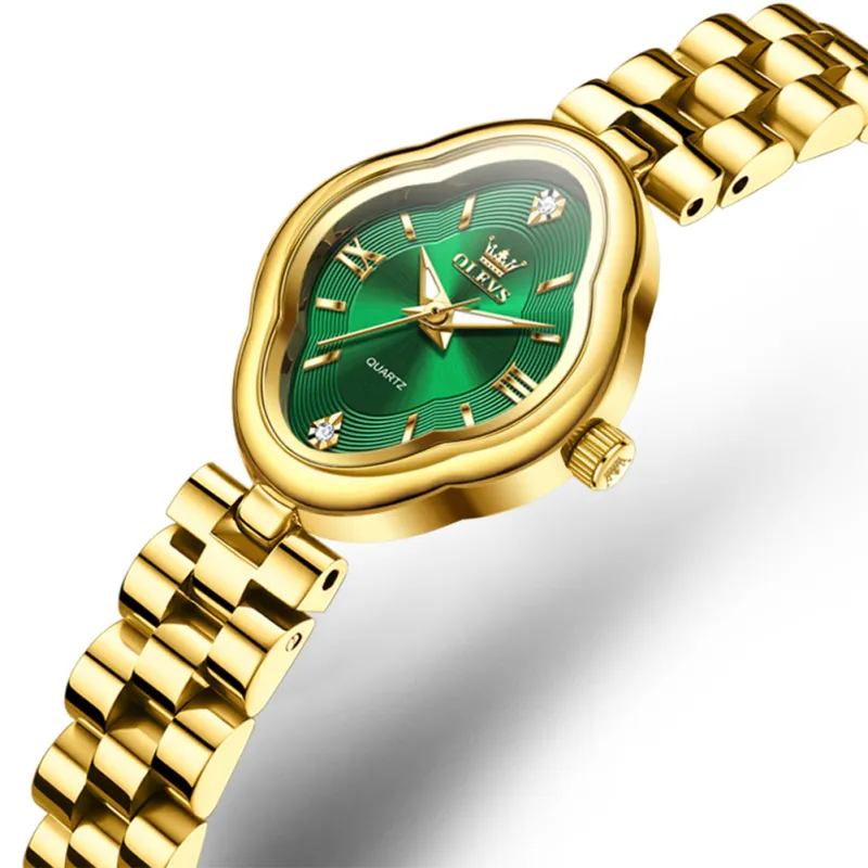 Reloj de Pulsera de Cuarzo para Mujer OP-5666-GREEN, Nuevo Estilo de Moda, Correa de Acero Inoxidable, Resistente al Agua, Luminoso, Informal