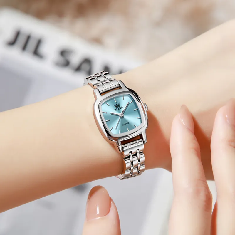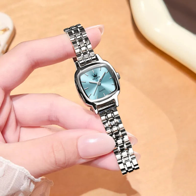 Relojes OP-5675 SILVER BLUE para Mujer, Reloj de Cuarzo Cuadrado Elegante de Acero Inoxidable, Resistente al Agua, Luminoso