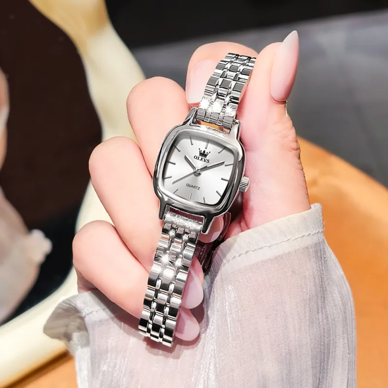 Relojes OP-5675 SILVER WHITE para Mujer, Reloj de Cuarzo Cuadrado Elegante de Acero Inoxidable, Resistente al Agua, Luminoso